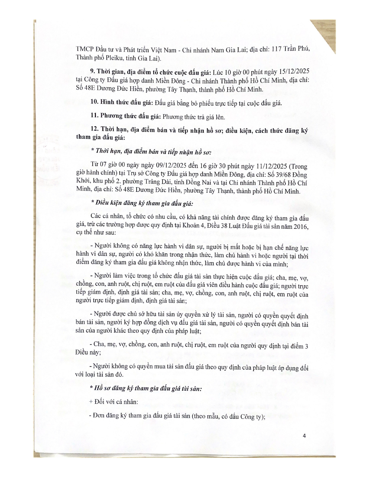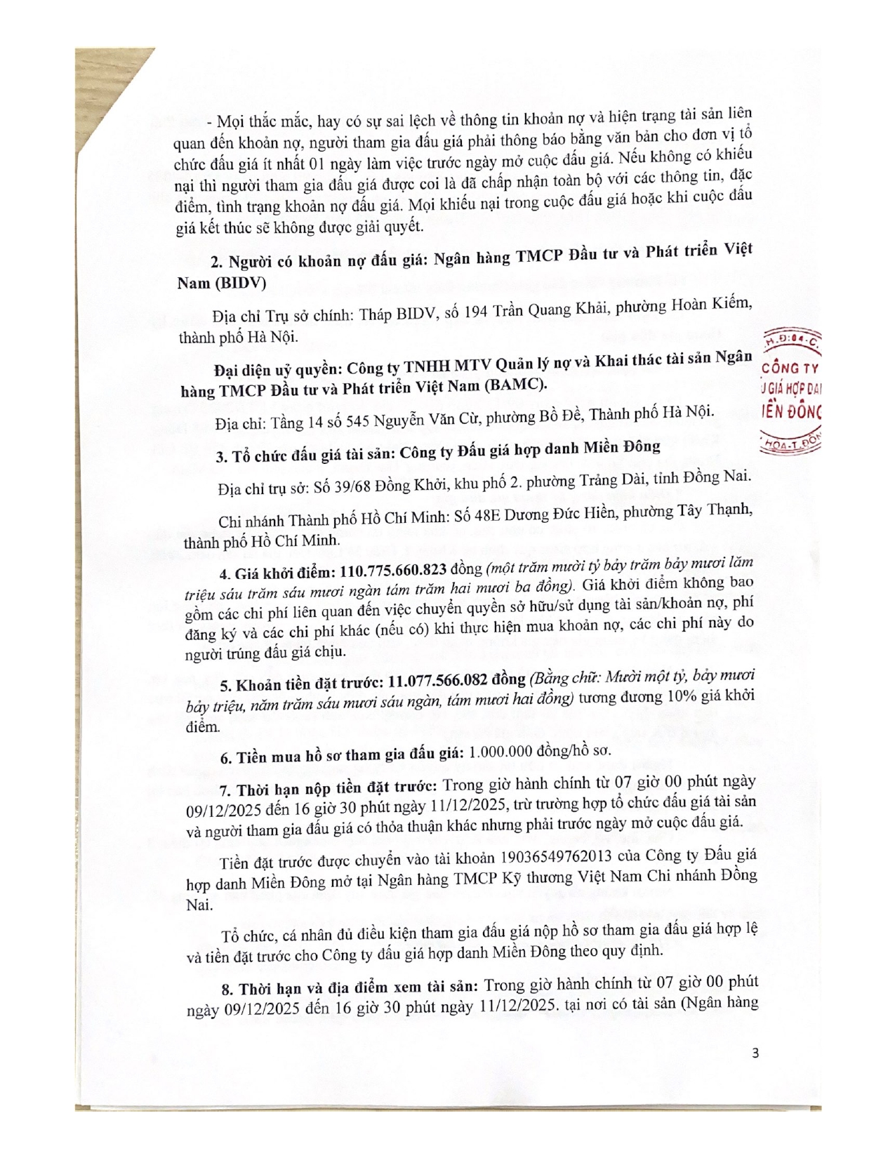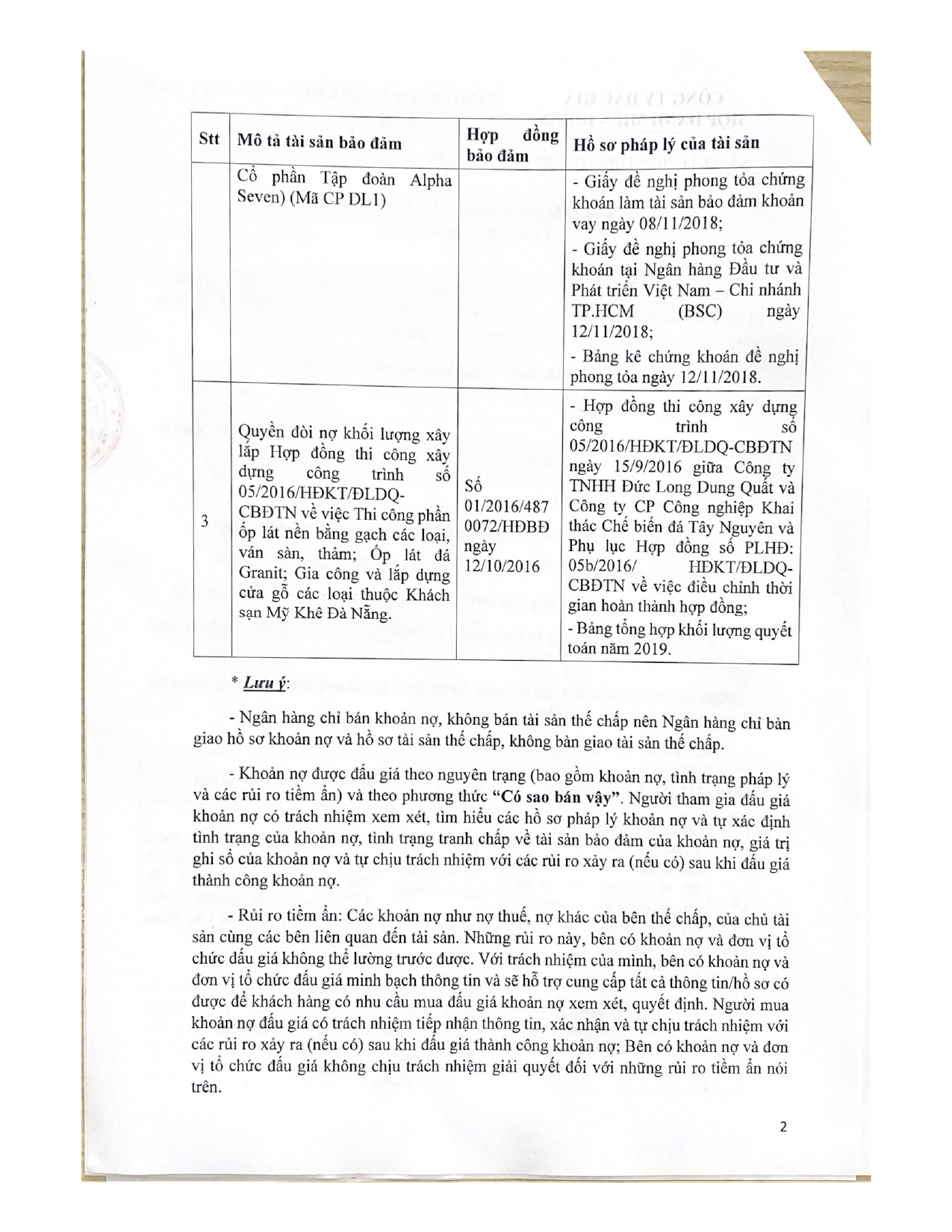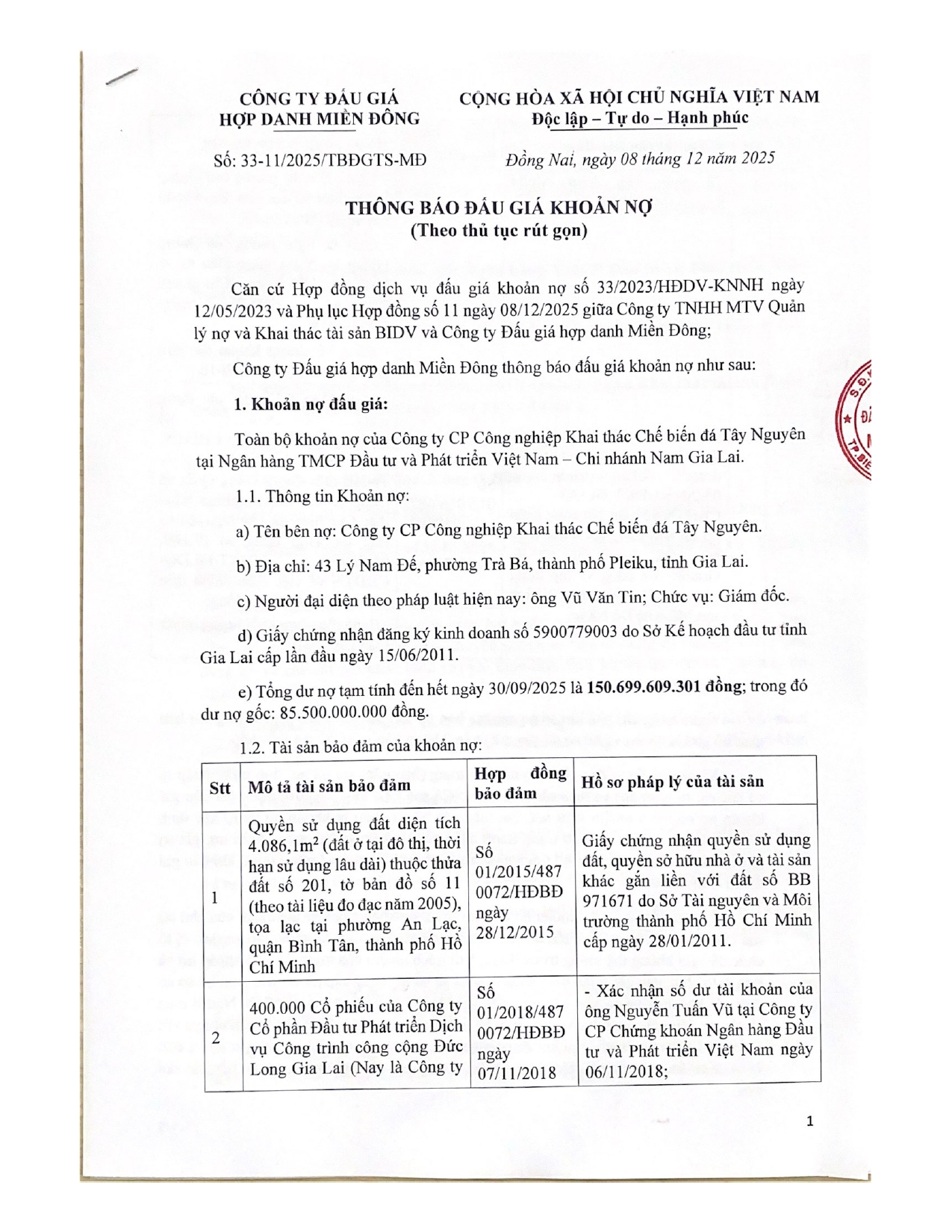 [08-12-2025] Thông báo đấu giá khoản nợ của Công ty CP Công nghiệp khai thác chế biến đá Tây Nguyên