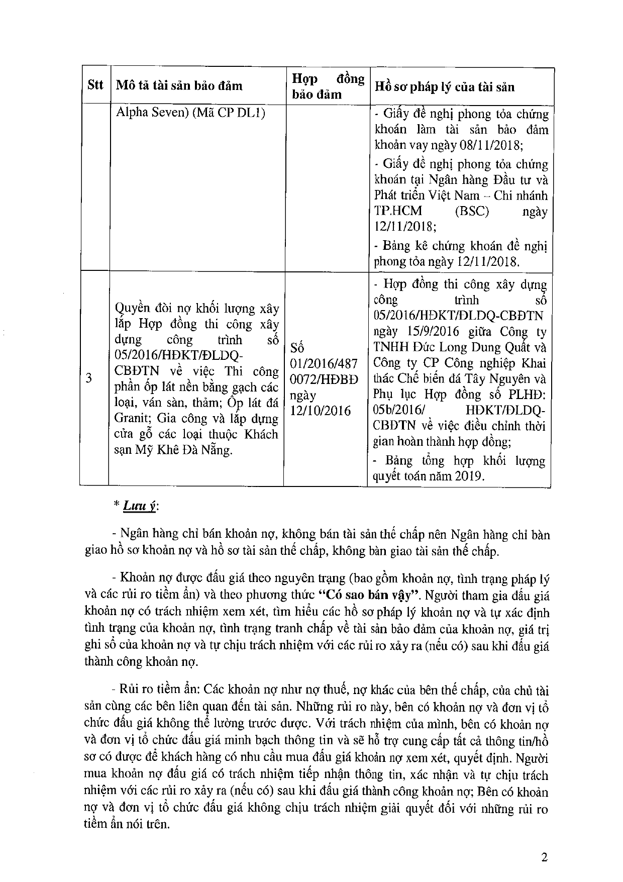 Công ty TNHH MTV Quản lý nợ và Khai thác tài sản BIDV thông báo đấu giá khoản nợ của Công ty CP Công nghiệp khai thác chế biến đá Tây Nguyên (theo thủ tục rút gọn) cụ thể như sau: