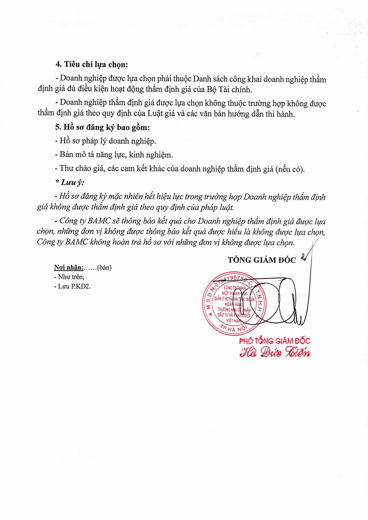 Công ty TNHH MTV Quản lý nợ và Khai thác tài sản BIDV thông báo về việc Lựa chọn Doanh nghiệp thẩm định giá tài sản là thửa đất và nhà ở tại số 5 phố Ngọc Hà, Hà Nội cụ thể như sau: